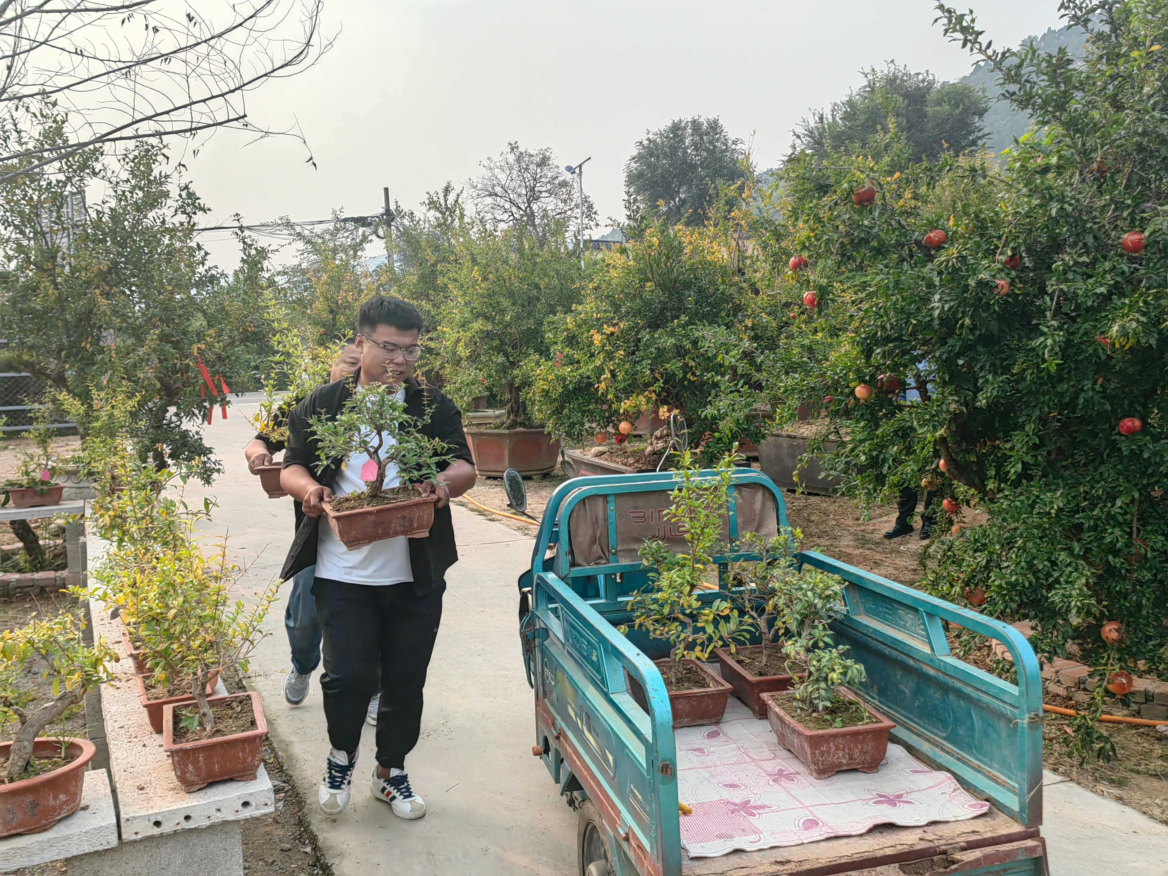 卖盆景挣钱,养护盆景也挣钱。合作社销售经理贾相见说,通过“政府+合作社+企业+村民”多方合作的模式,将1—4年生的童子功石榴盆景免费提供给农户;对养护合格的盆景,合作社进行回购,根据盆景品相每盆给予农户50元—100元的养护费用。目前,已经和广州花卉市场商定,每年提供不少于5000盆盆景。