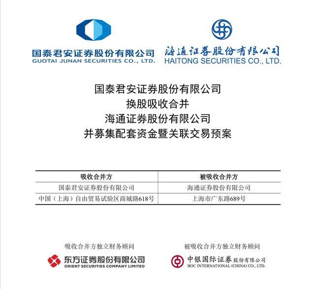 10月9日晚,国泰君安、海通证券公告,公司董事会审议通过换股吸收合并预案。两家公司将于10月10日开市起复牌。
