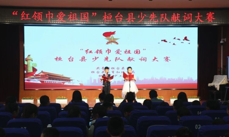 10月9日,由共青团桓台县委、桓台县教体局、桓台县少工委联合开展的“红领巾爱祖国”桓台县少先队献词大赛举行,来自全县各中小学的20个代表队参加比赛。