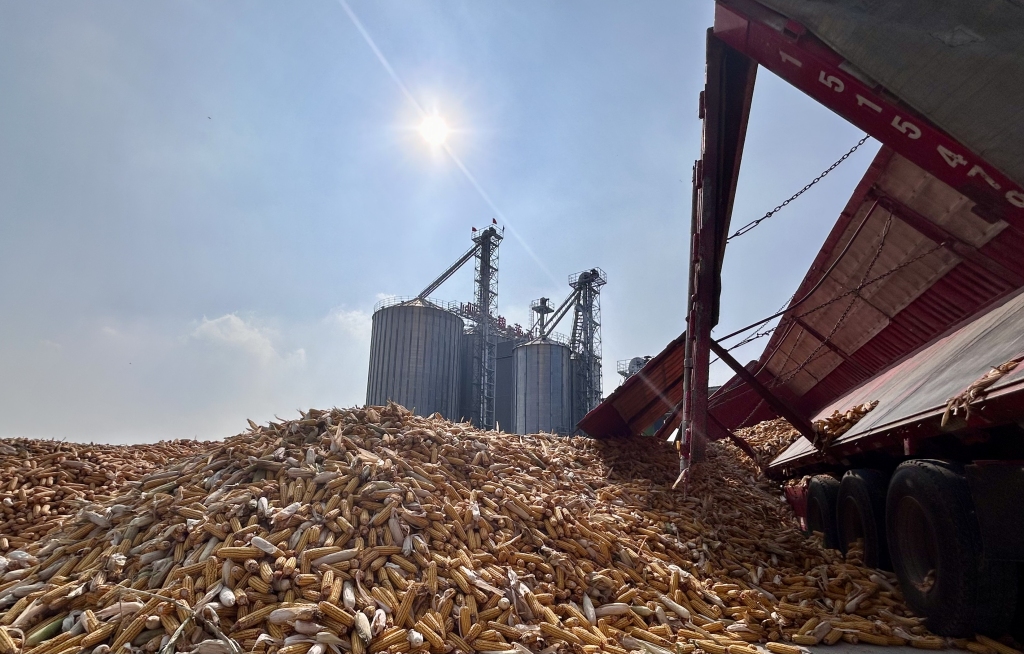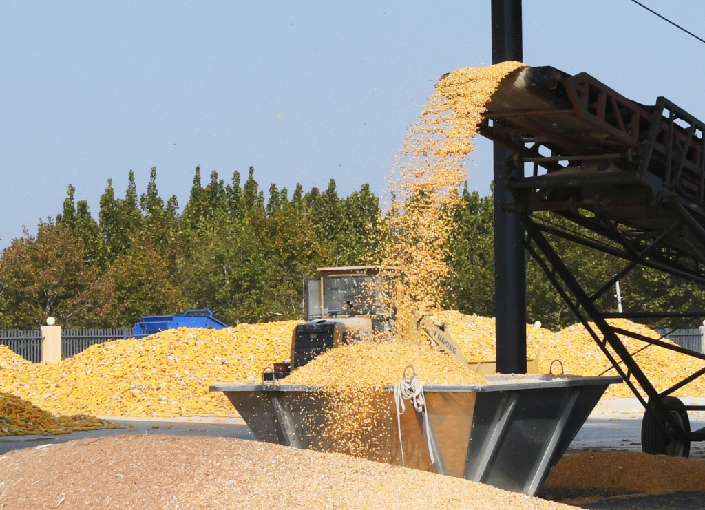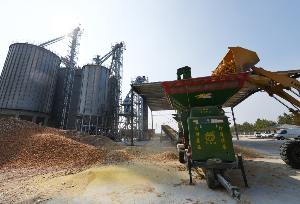 颗粒归仓,粮安天下。烘干设备每天可烘干450吨玉米,多个高达27米的罐体可盛装万吨干粮。