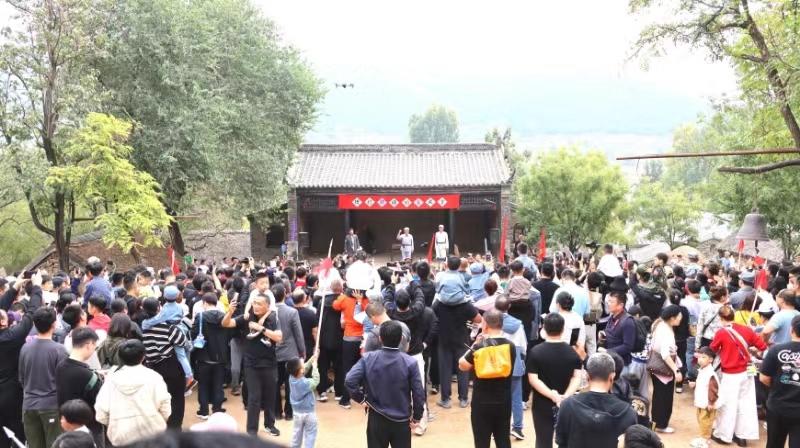 10月13日上午十一点半,位于沂南县马牧池乡常山庄村的红嫂家乡旅游区里人头攒动,沉浸式红色演艺节目《跟着团长打县城》正在精彩上演。