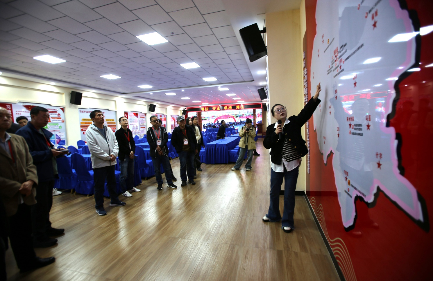 图为采访团在龙王坝法律大讲堂观摩采访。