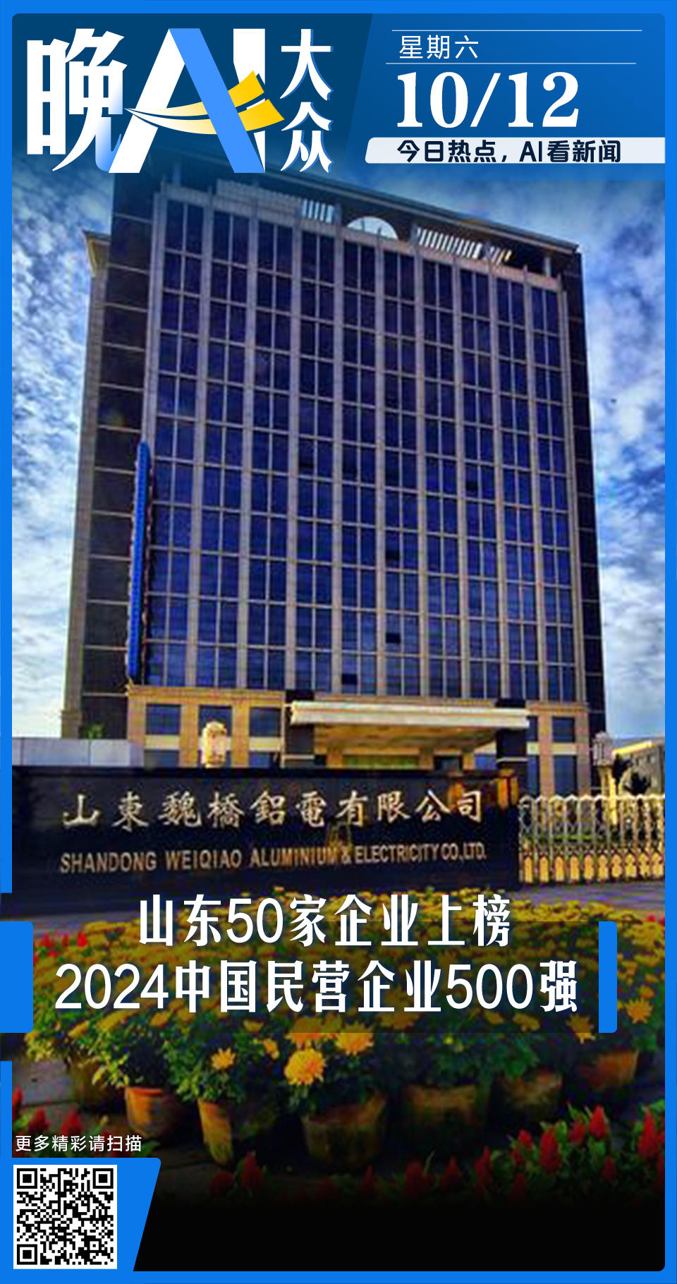 10月12日下午,由中华全国工商业联合会、甘肃省人民政府主办的2024中国民营企业500强发布会举行。山东共有魏桥创业集团等50家企业入选。详情>>