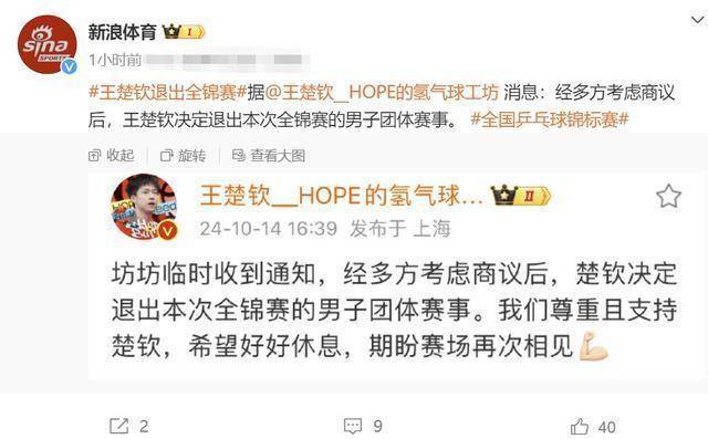 王楚钦宣布退出2024年的全国乒乓球锦标赛男团赛事,这个决定得到了不少球迷的支持。大家认为,自从奥运会归来之后,王楚钦的行程安排得非常紧凑,几乎没有休息的时间。