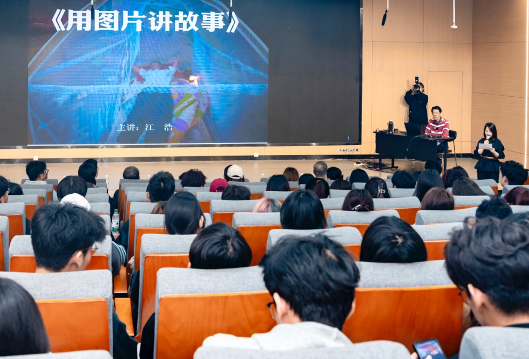 2024年10月15日上午,山东工艺美术学院举办摄影专题讲座《用图片讲故事》。本次讲座的分享人是业内资深摄影师江浩老师,山东工艺美术学院教务处处长 山东省摄影家协会副主席顾群业教授,图书馆馆长侯立平博士,数字艺术与传媒学院院长 山东电影家协会副主席吴向阳教授、副院长张光帅教授、以及摄影专业负责人丛海亮副教授,张牧副教授,冯秀彬老师等与在校近200位本科生及研究生一起听取了讲座。本次讲座由摄影教研室王培蓓副教授主持。