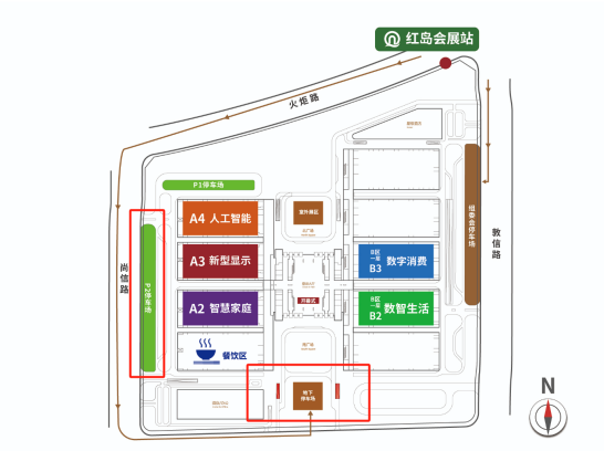 展会期间,自驾前往展会现场的朋友,可从尊海路进入展馆地下停车场负一层,或从尚信路西一门进出,停放至A区展馆西侧P2停车场。