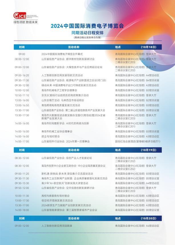 10月18日至20日,2024中国国际消费电子博览会将在青岛国际会展中心(红岛馆)举办。距离电博会开幕仅剩1天!下面这份超全逛展攻略将带你“玩转”电博会。