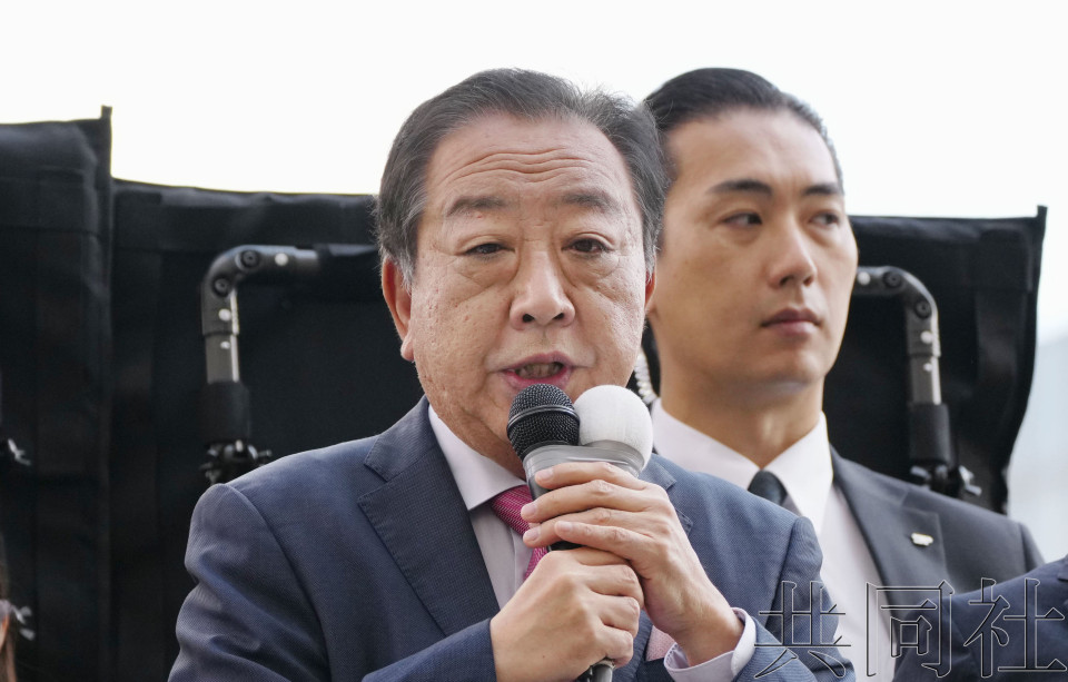 10月15日上午,立宪民主党党首野田佳彦在东京都八王子市演讲。