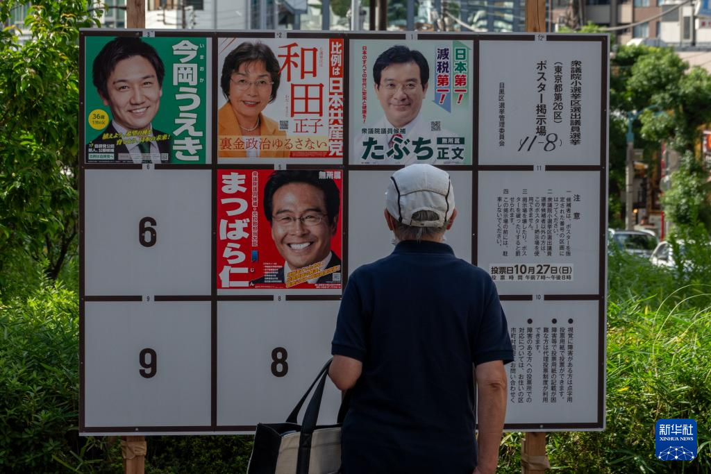 15日,一位行人在观看日本东京的一处众议院议员选举公示板。