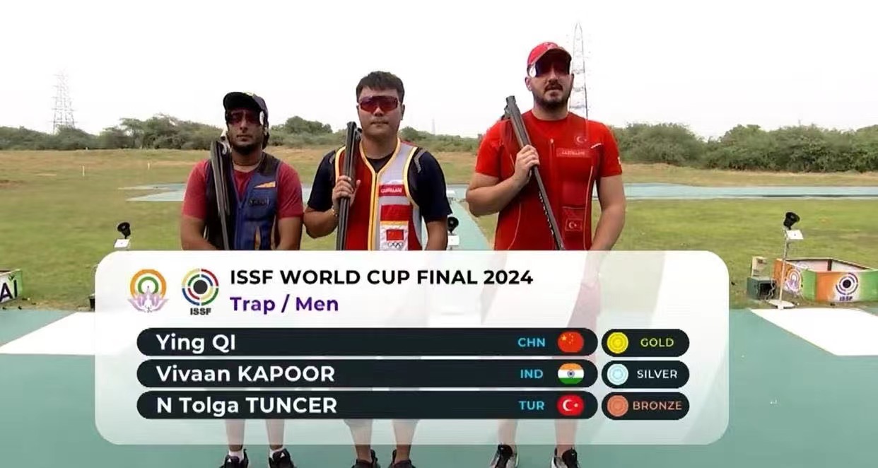 北京时间10月17日,2024射击世界杯年终总决赛正在印度新德里举行。中国选手齐迎成功晋级男子多向飞碟决赛,并以47中夺得冠军,为中国射击队获得了本次比赛的第五枚金牌。至此,中国射击队在本次射击世界杯总决赛共收获了5金3铜,位列奖牌榜首位。恭喜!
