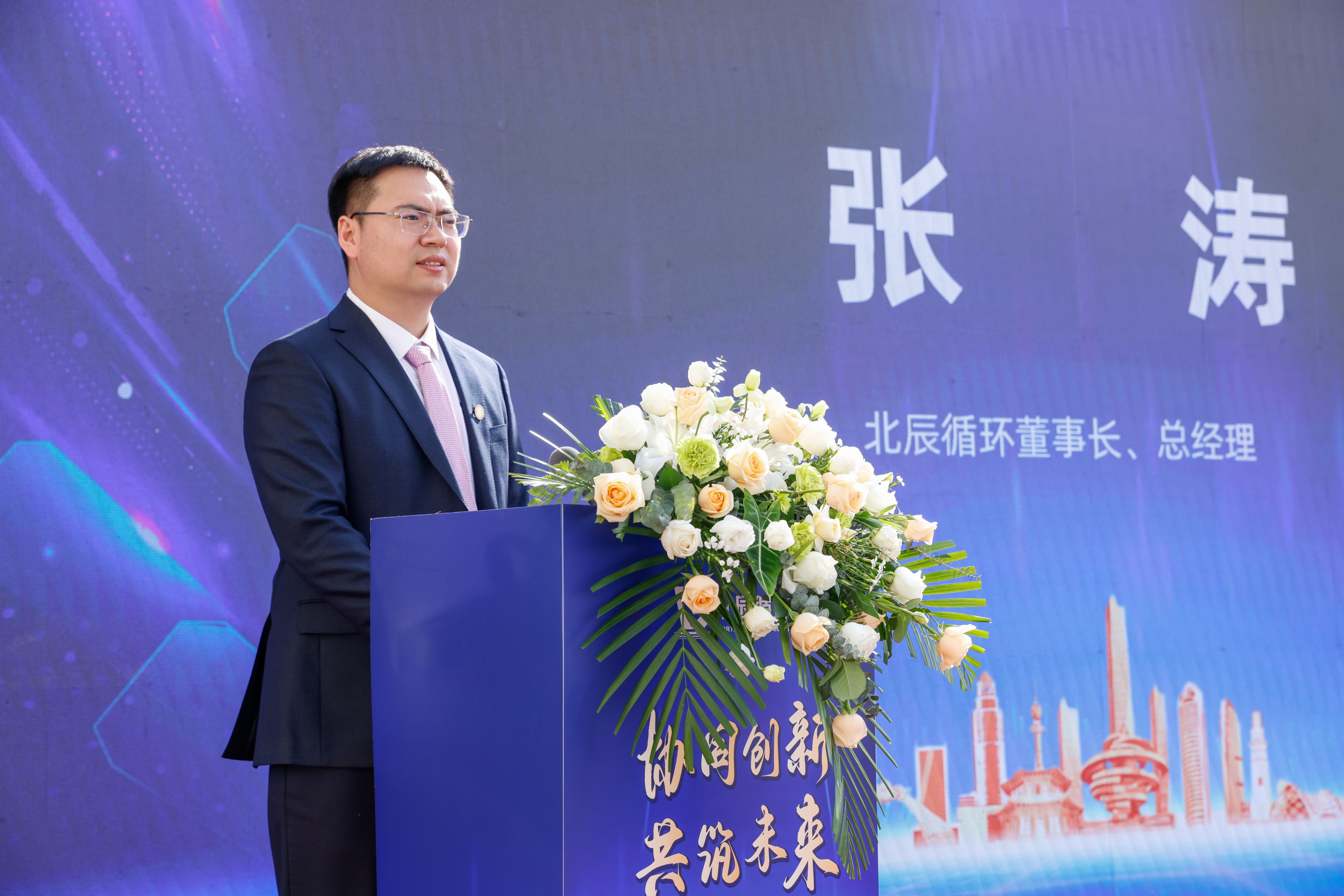 北辰先进循环科技(青岛)有限公司董事长、总经理张涛表示,由衷感谢青岛市、城阳区人民政府以及各职能部门,还有北岸控股集团给予的大力支持,并对北辰循环的股东、合作伙伴、各高校、金融机构及行业协会的信任与支持表示感谢。他表示,绿色可持续发展乃是一项关乎人类命运的重大事业,“3060碳达峰碳中和”是我们国家向全球作出的庄严承诺。北辰循环期待与各位嘉宾、合作伙伴一起,共同开启低碳绿色循环技术的新篇章,为实现绿色发展、建设美丽中国贡献智慧和力量。