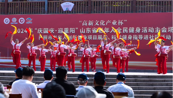 10月10日,2024年“庆国庆·迎重阳”山东省老年人全民健身活动主会场启动仪式、日照市老年人创新健身项目展示活动在日照举行。