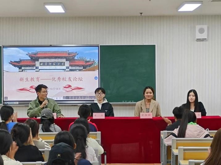 为提高大一新生学习积极性,明确大学生涯规划,10月16日上午,曲阜师范大学美术与书法学院于绘素楼205教室举行优秀校友论坛。2019级优秀校友黄乐、梁维娜、王艺蓉主讲,2024级新生参加,论坛由韩宜君老师主持。