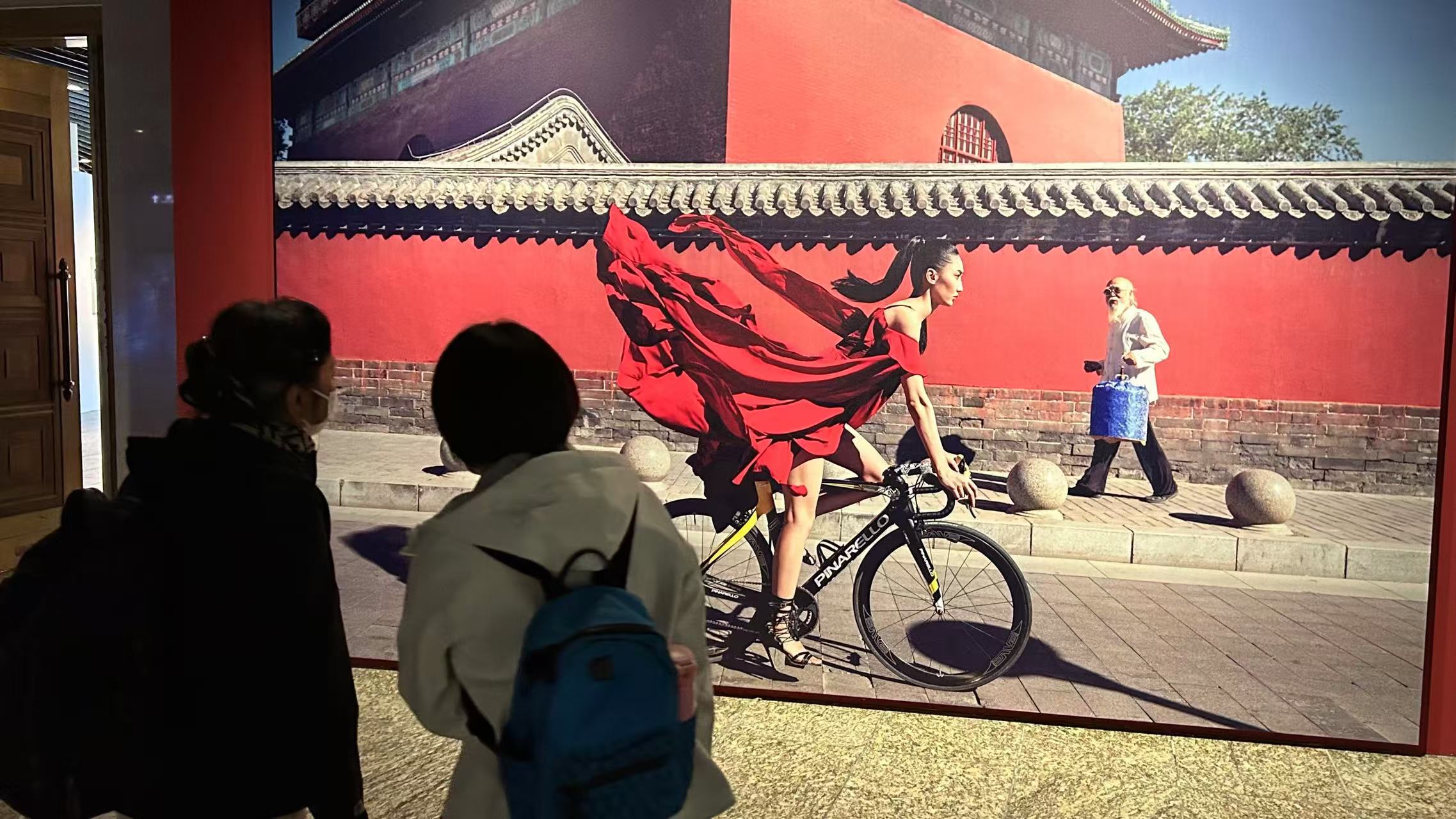 10月20日,北京国际摄影周展览现场,参观者欣赏参展作品。