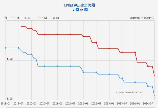 此次再度下调25个基点后,5年期以上LPR就来到了3.6%。