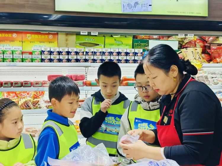 很快我们就来到了第一个打卡地——新玛特购物广场。我们的任务是卖火腿,卖火腿的小伙伴实在是太多了,我们有些胆怯。我好不容易鼓起勇气去向一位陌生阿姨推销,但还是被拒绝了,我心中有些许的失落,唉!实在是太难了!我心里想:为什么顾客不买我们的火腿呢?难道是不好吃?于是,我切了一小块尝了尝,味道微咸,不甜,挺好吃的,应该是我们的售卖方法有问题吧。