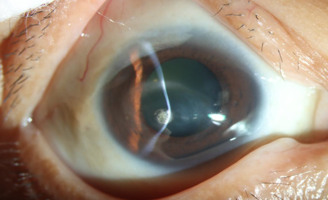 半个月前,胡女士突然看不见了,在当地医院被诊断为右眼视网膜脱离,但由于其还合并有继发性圆锥角膜,情况十分复杂且棘手。衡量再三,她听取了医生的建议,来到青岛眼科医院眼底病科主任李君的门诊,寻求帮助。经过一番详细检查后,李君发现,胡女士的视网膜脱离明显,需紧急手术治疗,否则眼球会有萎缩的风险。而且合并有继发性圆锥角膜,角膜最薄处仅有200um,周围角膜基质混浊,钙化,角膜穿孔的风险较大。