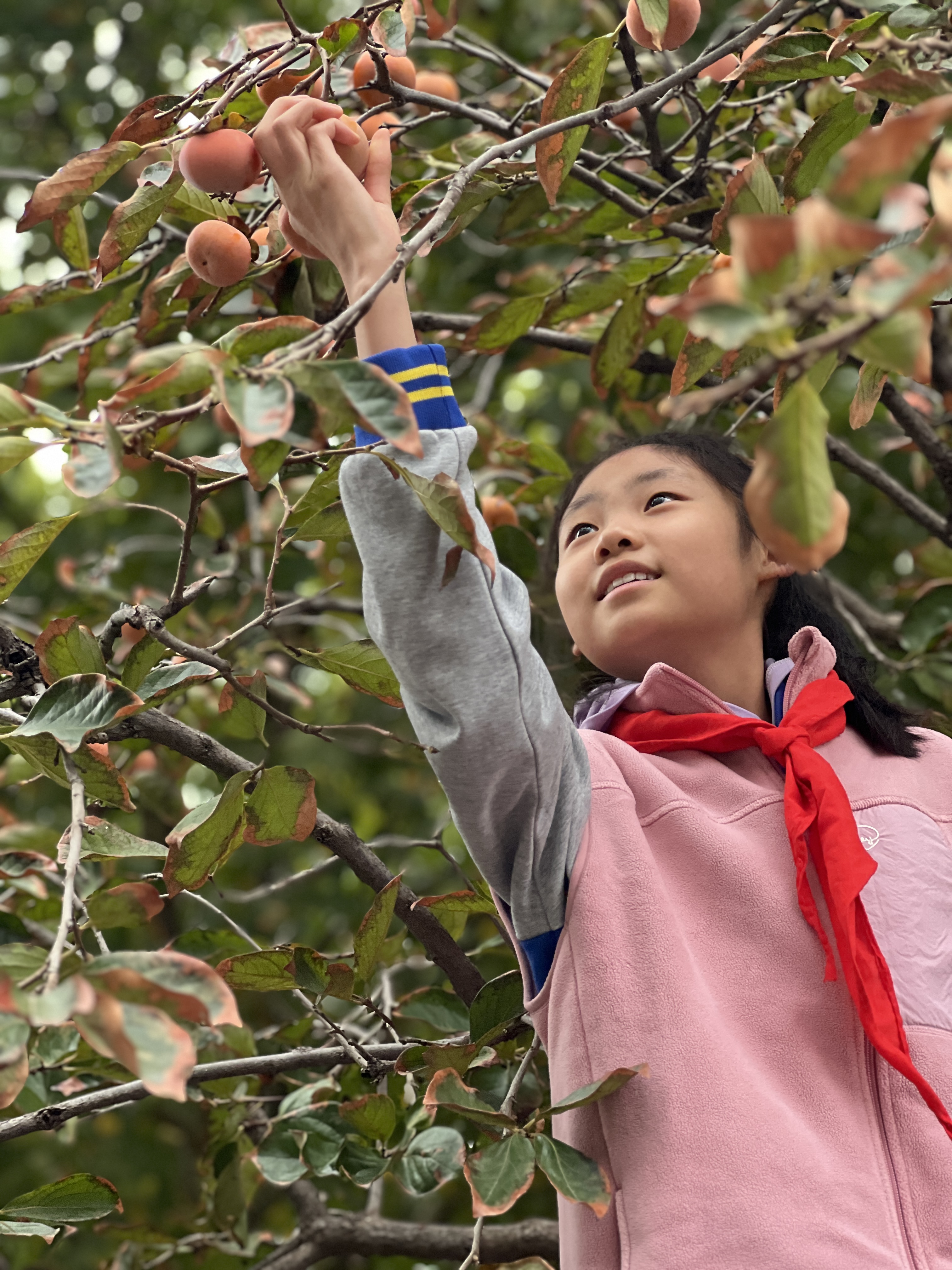 李雅校长、陈海霞副校长、孔佳佳老师也参与到了此次的采摘过程中。李雅校长说柿子从青涩的小果子,一点点长大,一点点变红,就像学生们一样在不断地成长和进步,向内生长,向外发光。