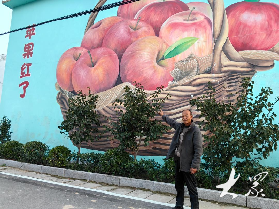 泗兴屯村是苹果产业专业村,绘制了苹果主题的墙绘。