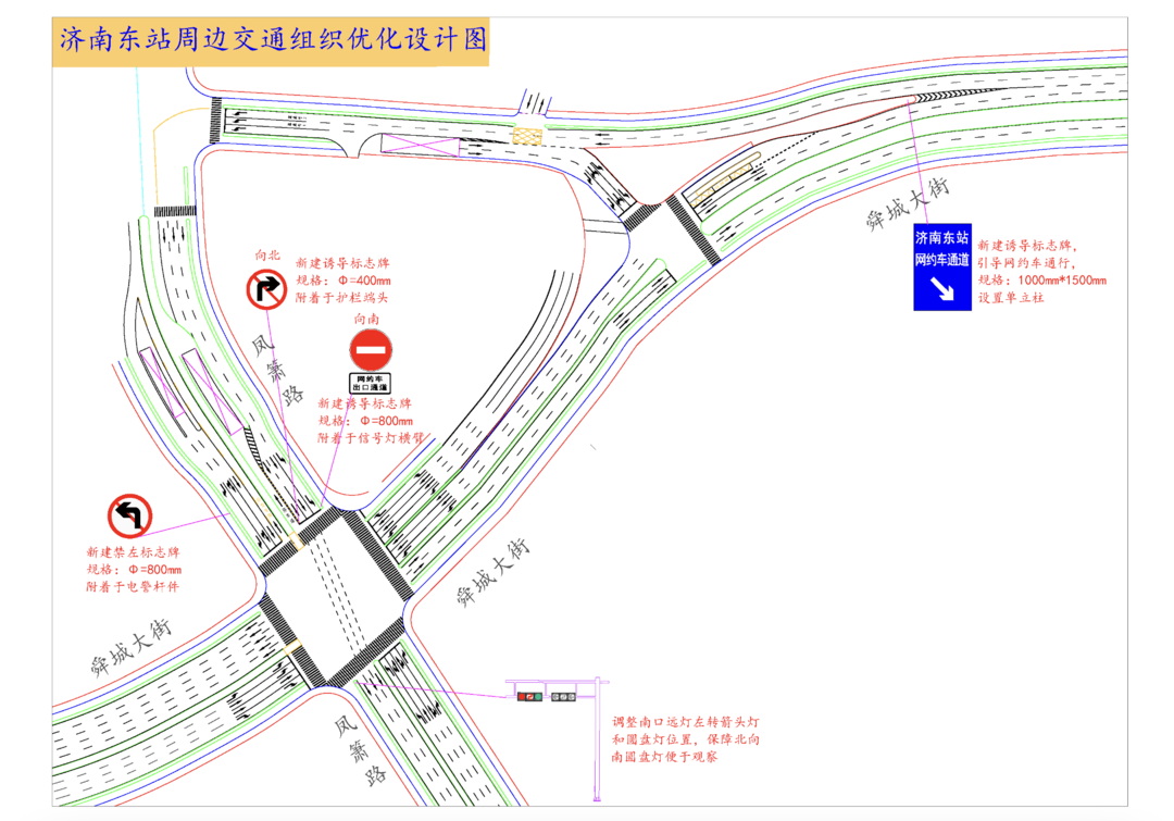 “网约车通道的交通组织通行方向调整后,舜城大街至凤箫路路口各方向所承接车流量流向存在明显变化。”历城交警大队副大队长冯斌说,因此该大队才对路口部分进口道车道功能进行调整,并且增设了导流线,并重新定位了信号灯,以适应改变后的车流量流向。