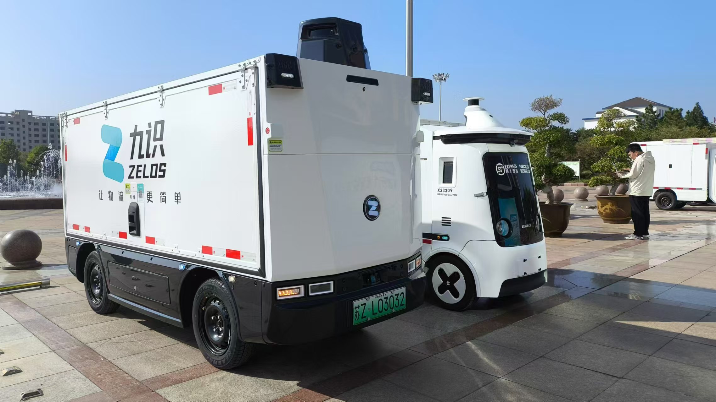 当天,在淄川区经济开发区的推介会现场,快递员完成包裹卸车、路线设定等操作后,一款由新石器生产的顺丰无人配送车缓缓驶离,按照既定线路返回后,无人配送车打开车斗,快递员将货物重新装车,配送车自行倒车回位。