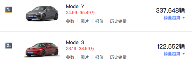 截至目前,特斯拉全球在售车型包括Model 3、Model Y、Model S及Model X共计四款车型,后两者因售价较高且为进口车型,在国内存在感并不高。Model Y是特斯拉首款国产SUV车型,也是特斯拉在华市场重要的销量来源。以今年前三季度为例,特斯拉中国累计零售销量为460200辆,其中,Model Y为337648辆,占总销量的73.37%;Model 3为122552辆。