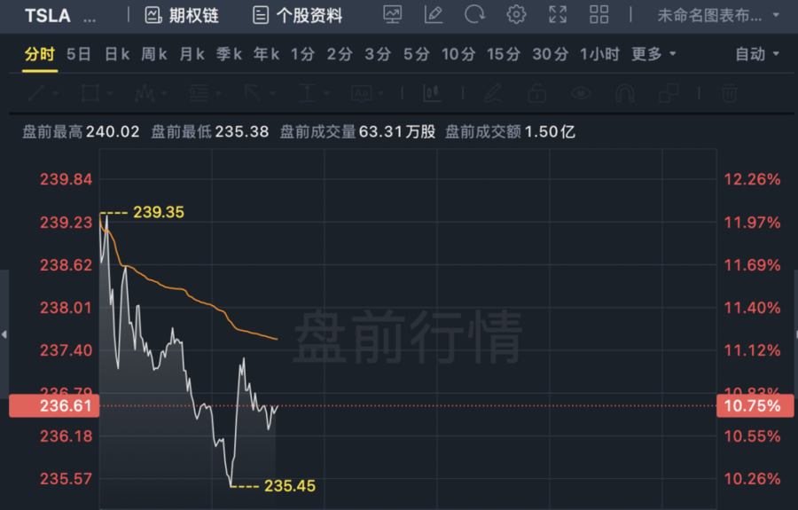 或受财报影响,美股盘前特斯拉股价涨超10%。