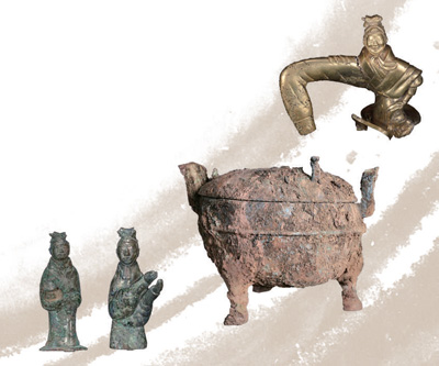 秦始皇陵西1号墓出土金器和铜器。以上图片均为秦始皇帝陵博物院提供