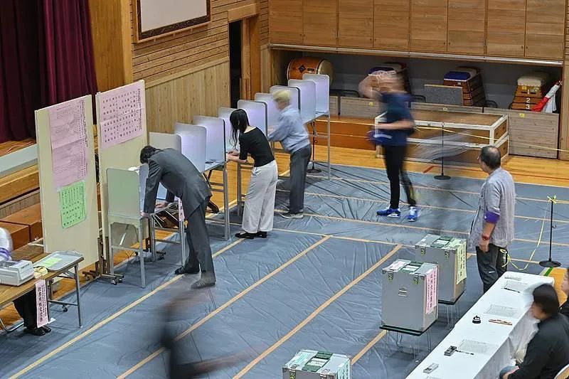 日本选民投递选票。来源:央视新闻