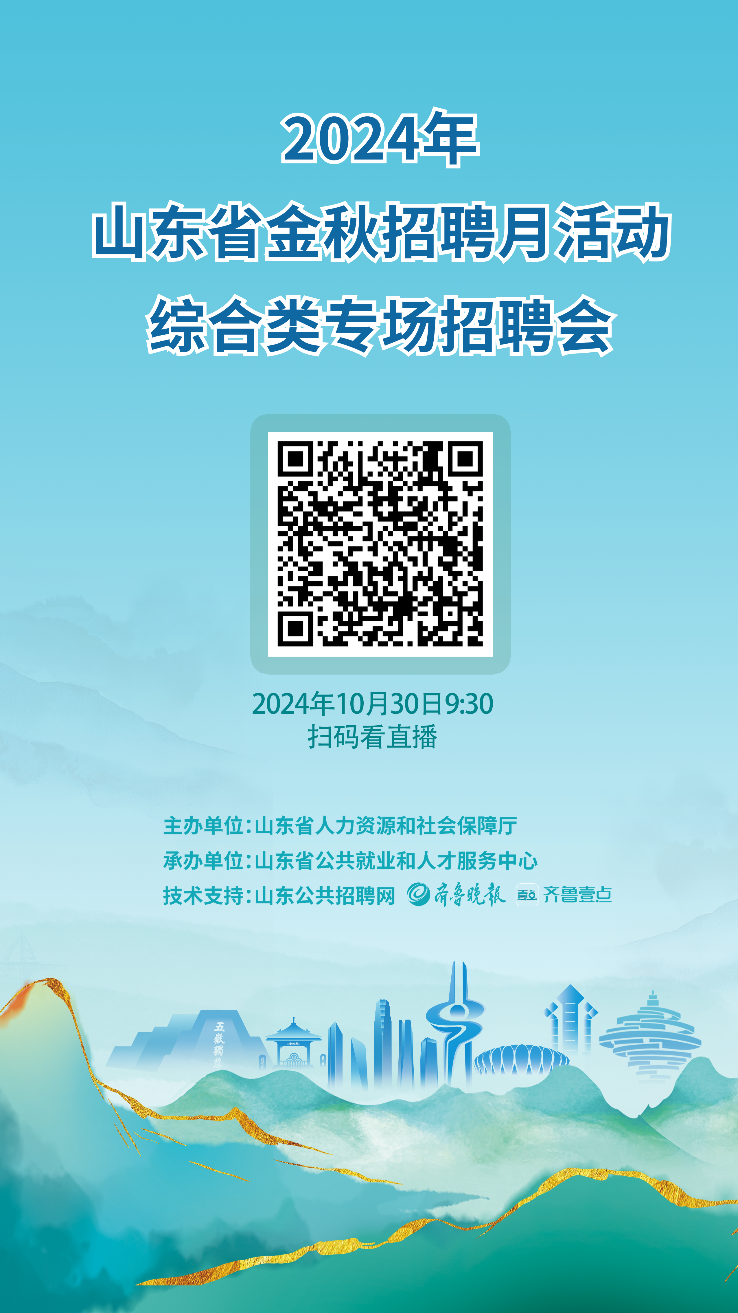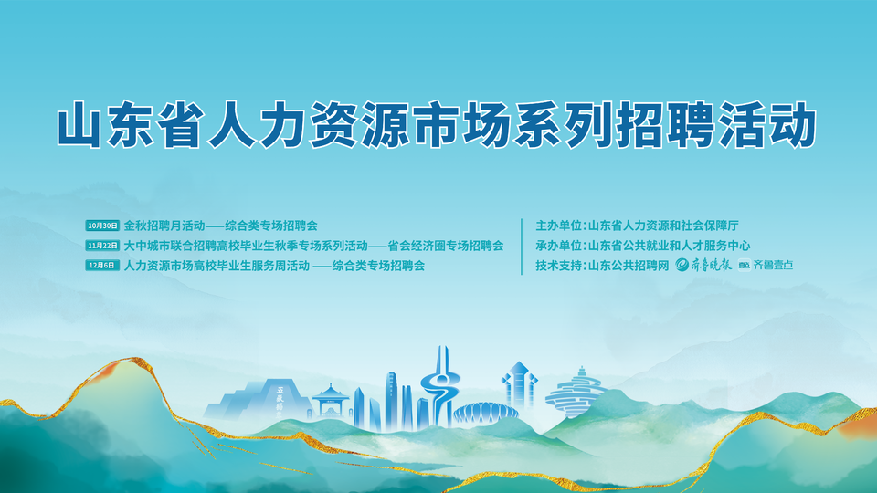 10月30日,2024年山东省金秋招聘月活动——综合类专场招聘会将在山东省人力资源市场举行。本次活动由山东省人力资源和社会保障厅主办,山东省公共就业和人才服务中心承办,山东公共招聘网、齐鲁晚报·齐鲁壹点提供技术支持,面向有招聘需求的各类用人单位和广大求职者开展就业双选活动。