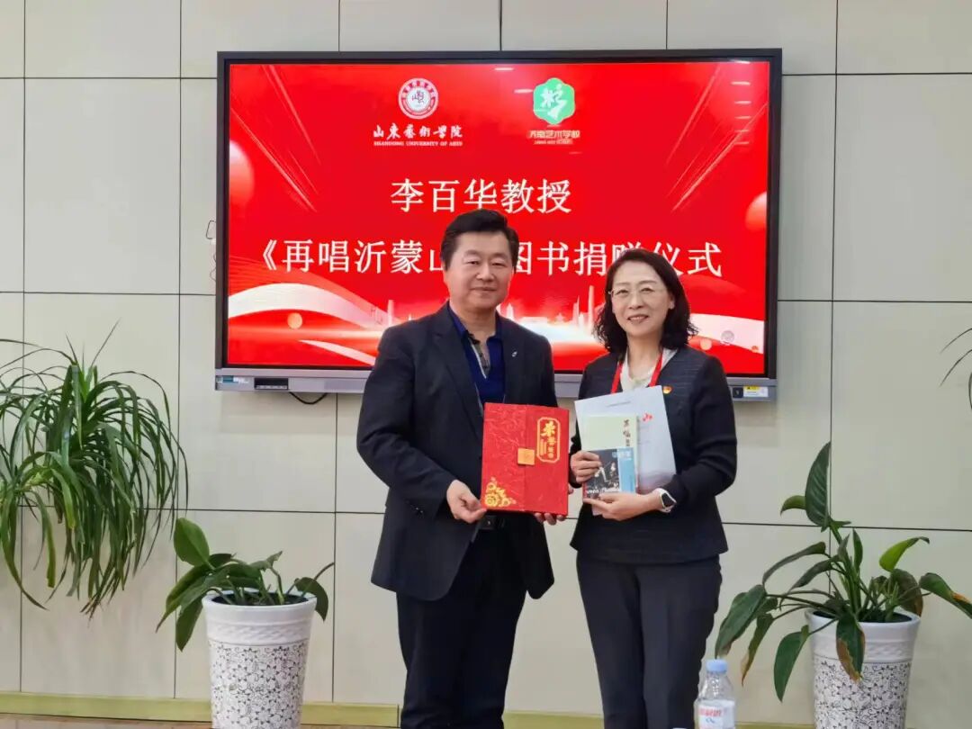 座谈会后,国家一级作曲家、指挥家、山东艺术学院教授李百华向济南艺术学校捐赠图书与光盘专辑《再唱沂蒙山》。李教授对艺术学校的发展寄予厚望,他鼓励学校发挥历史优势和专业特长,持续打造原创艺术作品服务社会。