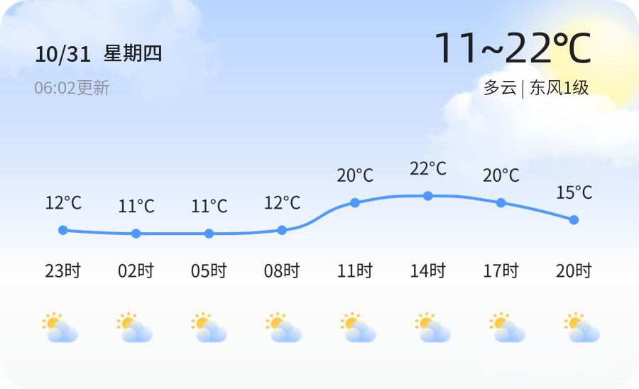 今天是2024年10月31日,农历九月廿九,枣庄天气为多云,东风1级,空气湿度高达97%,体感温度较为凉爽,仅为12.2℃。空气质量方面,PM2.5浓度为99,属于轻度污染,建议市民外出时佩戴口罩,减少户外运动,特别是敏感人群应做好防护措施。天气虽多云,但不影响日常出行,请市民朋友根据天气变化适时增减衣物,注意防寒保暖。