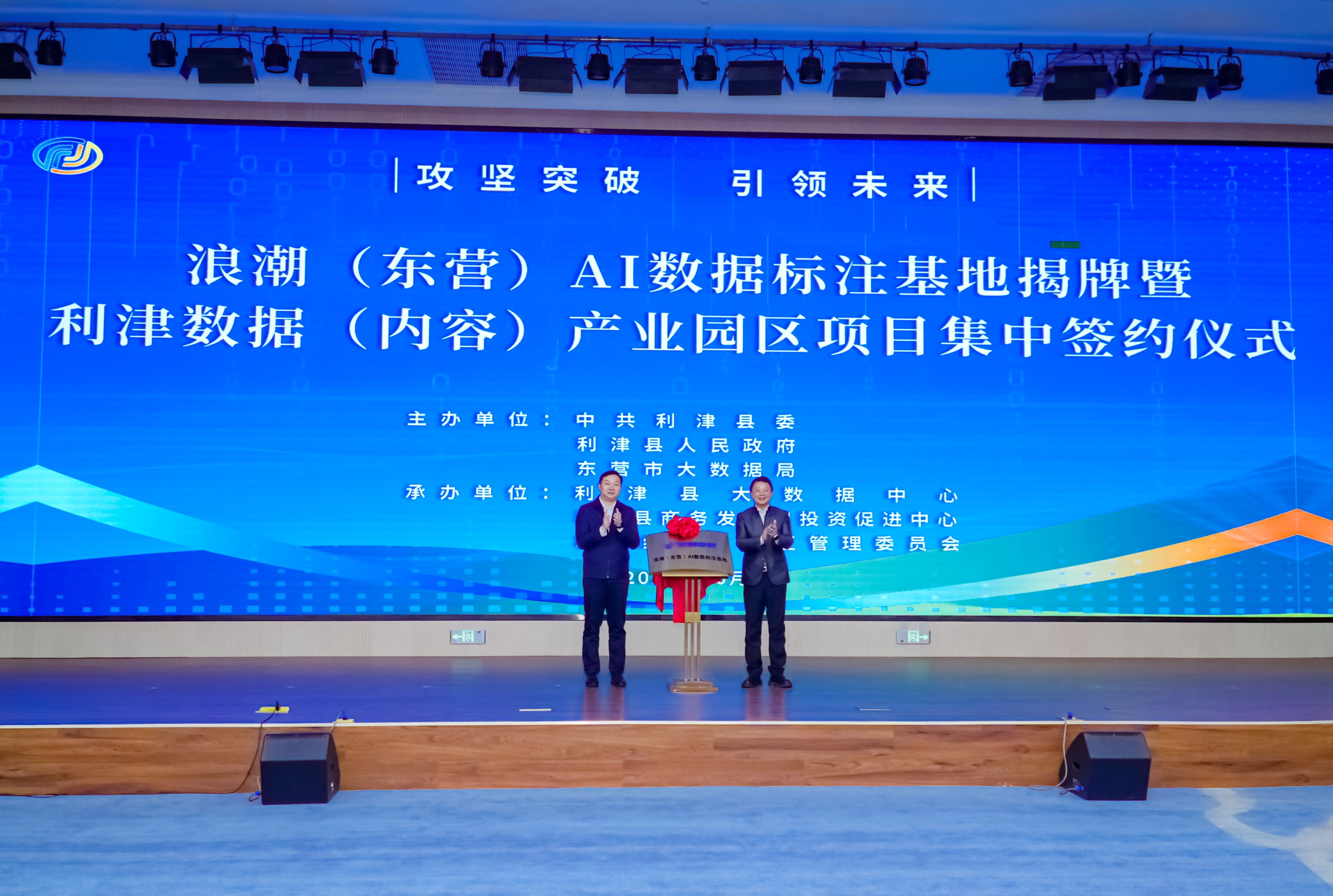 10月22日,浪潮(东营)数据标注基地揭牌暨利津数据(内容)产业园区项目集中签约仪式举行,东营市委常委、副市长何宪卓出席活动。浪潮集团副总裁、浪潮卓数大数据董事长张帆与利津县委书记张亚东,共同为浪潮(东营)数据标注基地揭牌。