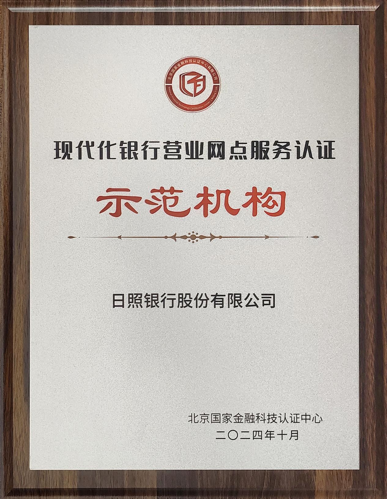 日照银行获评“现代化银行营业网点服务认证示范机构”