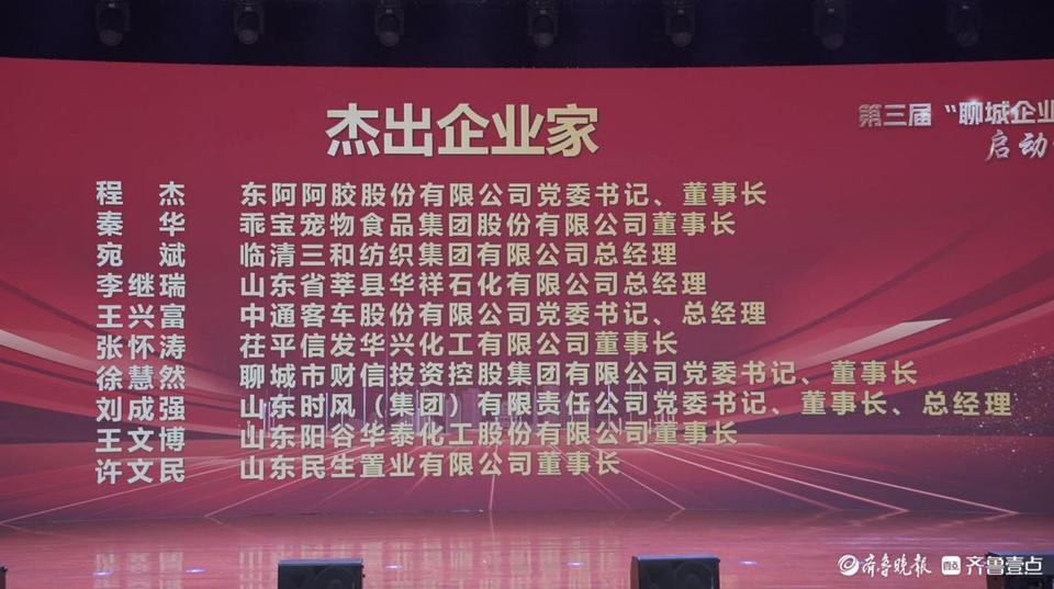 会议宣布了2024年聊城市优秀企业家名单,共100名,其中,杰出企业家10名、领军企业家20名、创新企业家20名、优秀企业家50名。