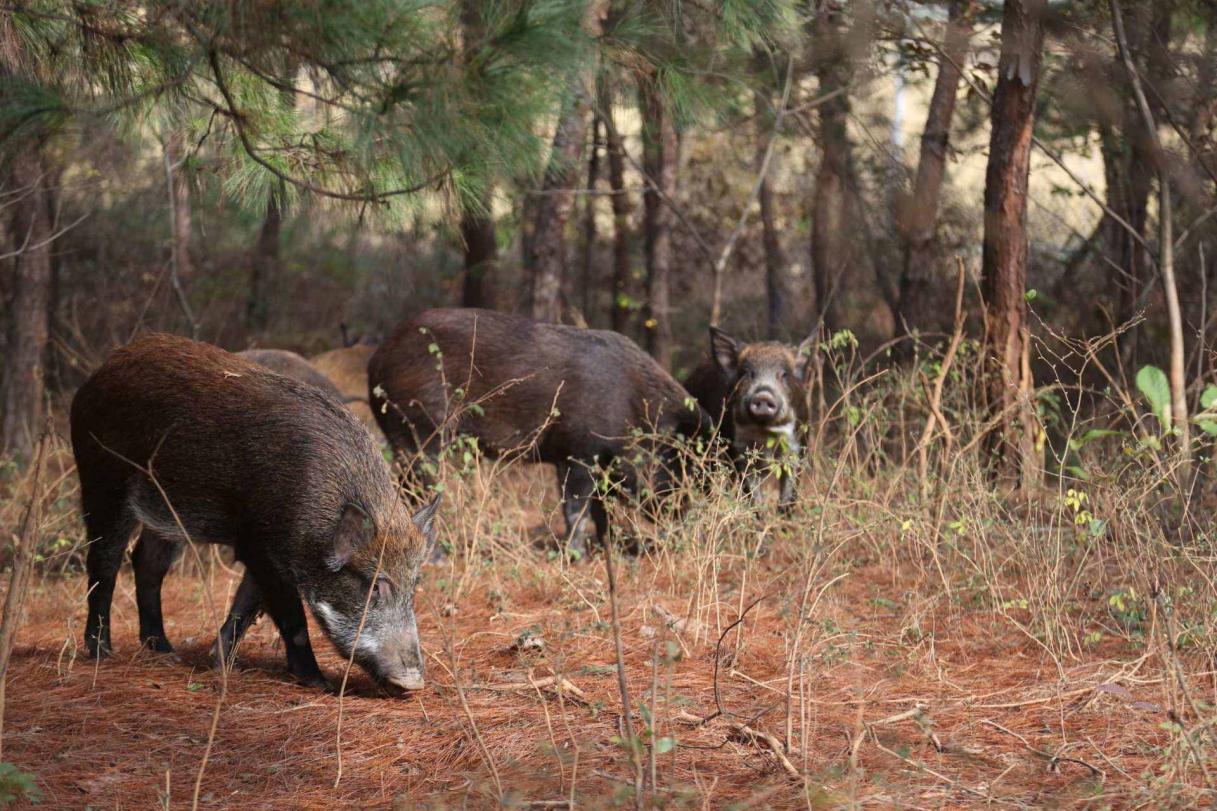 进入秋冬季后,野猪种群开始育肥,为过冬做准备,偏爱在林下或农田附近觅食。山里的食物减少,野猪下山觅食逐渐频繁,玉米、红薯、花生等秋粮作物都是野猪爱吃的口粮。