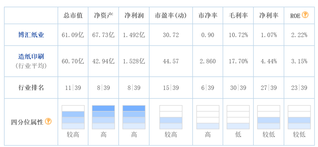 以10月30日收盘价计算,博汇纸业目前市盈率(TTM)约为14.38倍,市净率(LF)约0.9倍,市销率(TTM)约0.32倍。