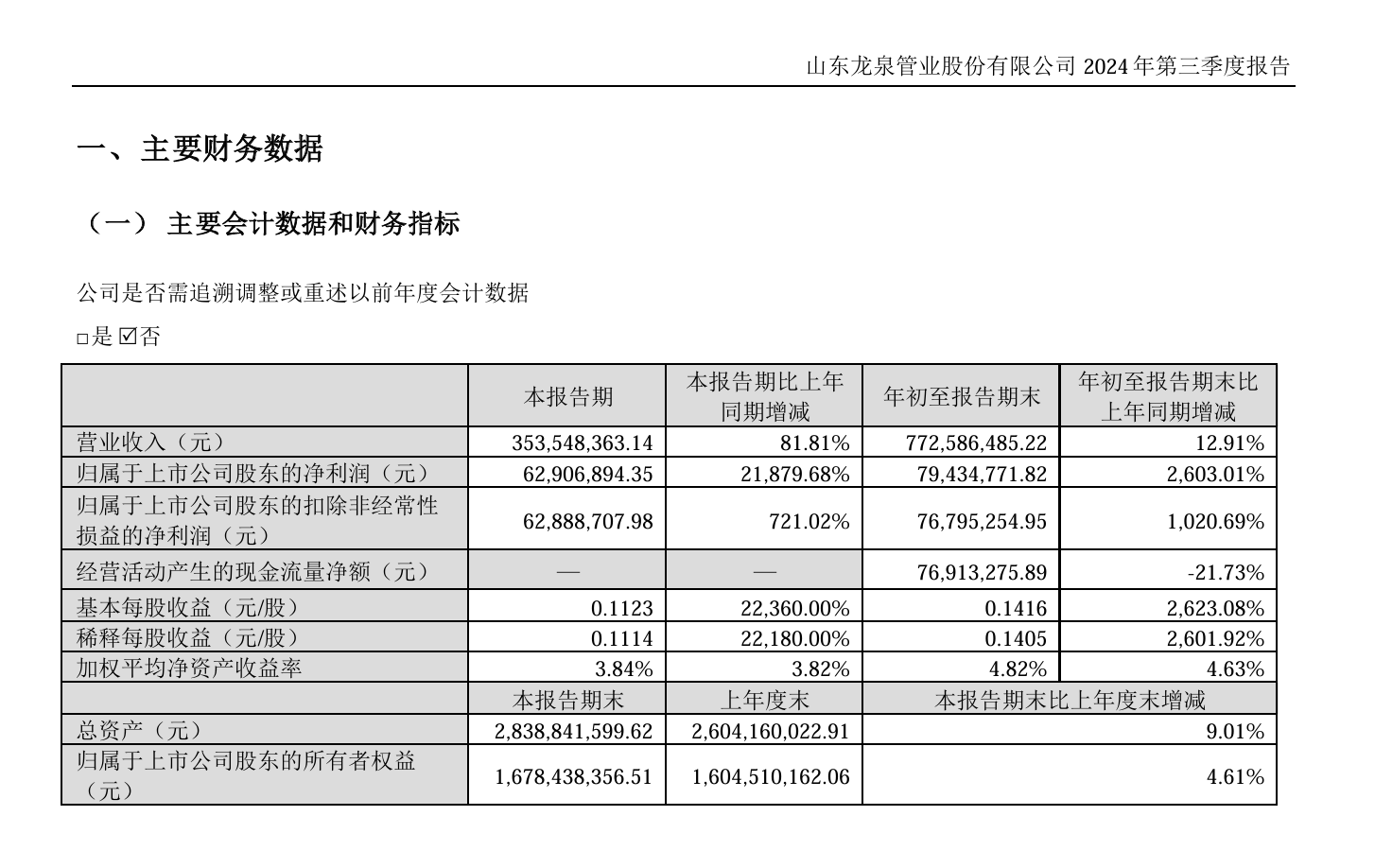 归母利润同比21879.68%,龙泉股份成“翻倍股”?