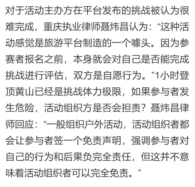 1小时内登顶黄山奖励1万元?景区回应:非官方组织