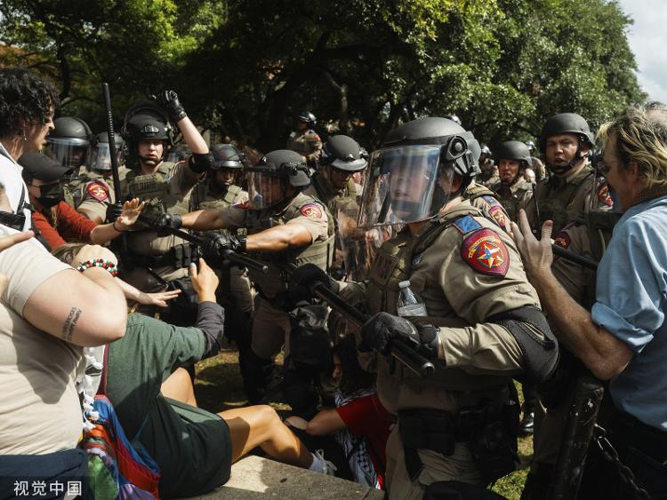 4月17日起,美国多地高校爆发反战示威活动,要求加沙地带永久停火、美国停止军援以色列。在多所大学,警察和抗议者之间激烈争执、学生和教授被警察粗暴拖走的画面在美国主流媒体和社交平台上疯传。
