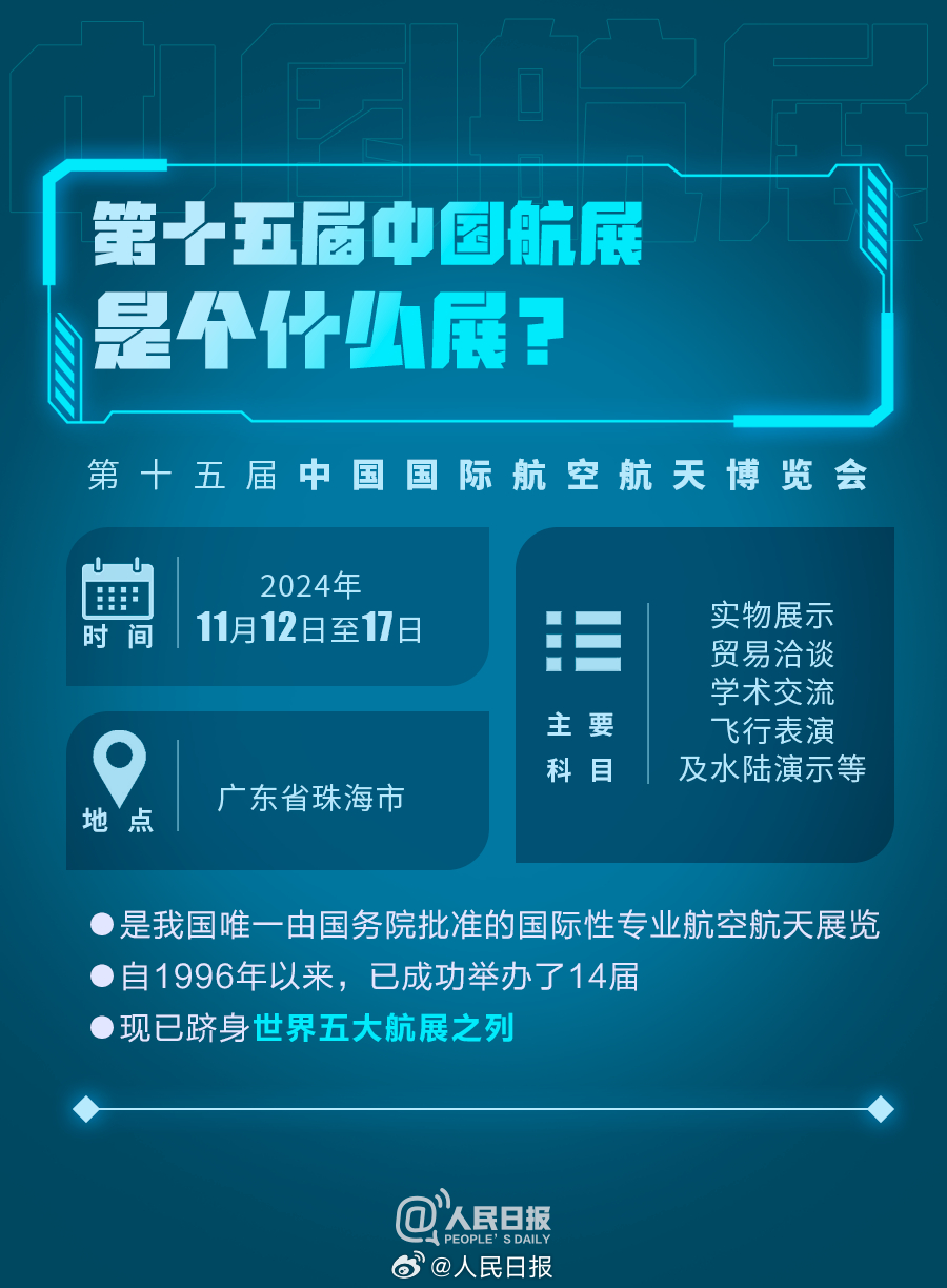 11月12日至17日,第十五届中国国际航空航天博览会将于广东珠海举办。
