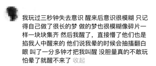 如今,这一危险游戏再次出现在校园之中,与青少年追求新奇体验的天性有关。然而,这种“体验”不仅当时会让孩子受到惊吓,甚至过后也可能留下后遗症,影响智力发育。