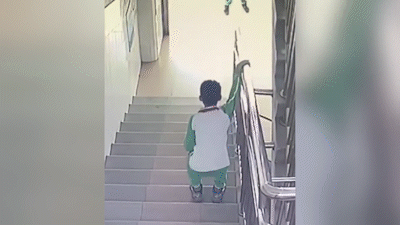 2021年12月26日,河北保定监控拍下一小学男生下楼梯时,坐在扶手杆上玩“滑滑梯”,因未能抓紧栏杆,后翻180度摔下,头和脚同时着地,十分惊险,所幸该楼层间距不高,孩子父亲表示,孩子仅伤到了左脚,把视频发出来也是想警示其他家长。