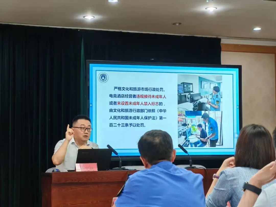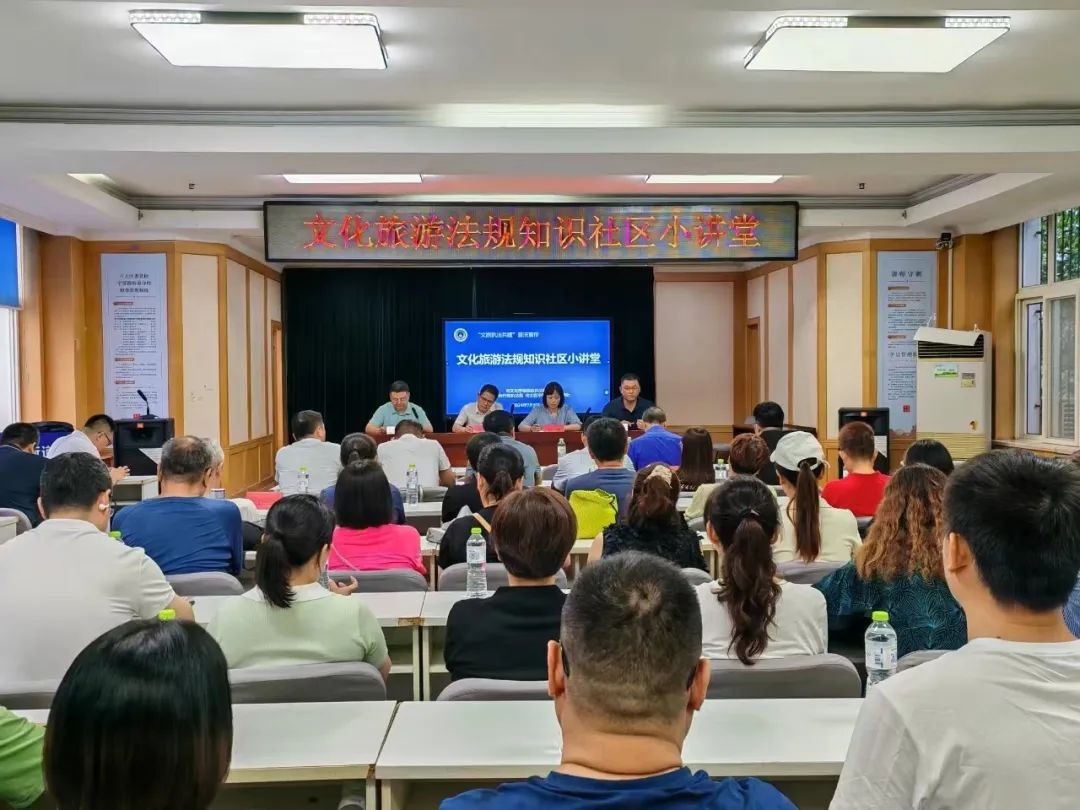 执法人员围绕未成年人合法权益保护、网络文化知识、非法出版物识别和文物保护、不合理低价游等内容,以PPT的形式向社区居民宣传文旅法律法规,为社区工作人员、居民上了一堂生动活泼接地气的文旅普法课,提高了社区居民文化法律意识,密切了文化执法部门与社区居民的沟通联系。