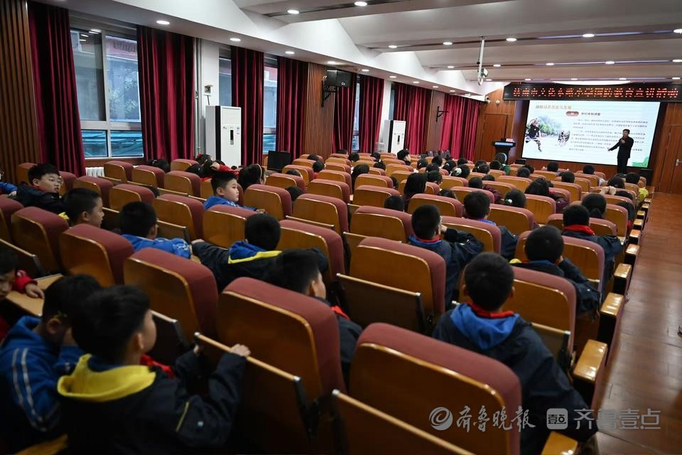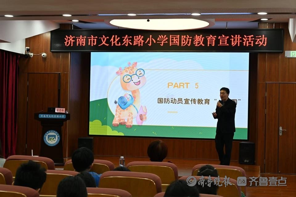 为了推动国防动员深入到广大学生群体,提升小学生关心国防、热爱国防、建设国防、保卫国防的思想共识和行动自觉,11月6日下午,以“国防‘图’展校园 共筑强国梦想”为主题的山东省国防动员宣传教育“一张图”走进校园系列活动第四站来到济南市文化东路小学。学校组织100余名学生聆听了讲座,形成了良好、热烈的学习氛围。