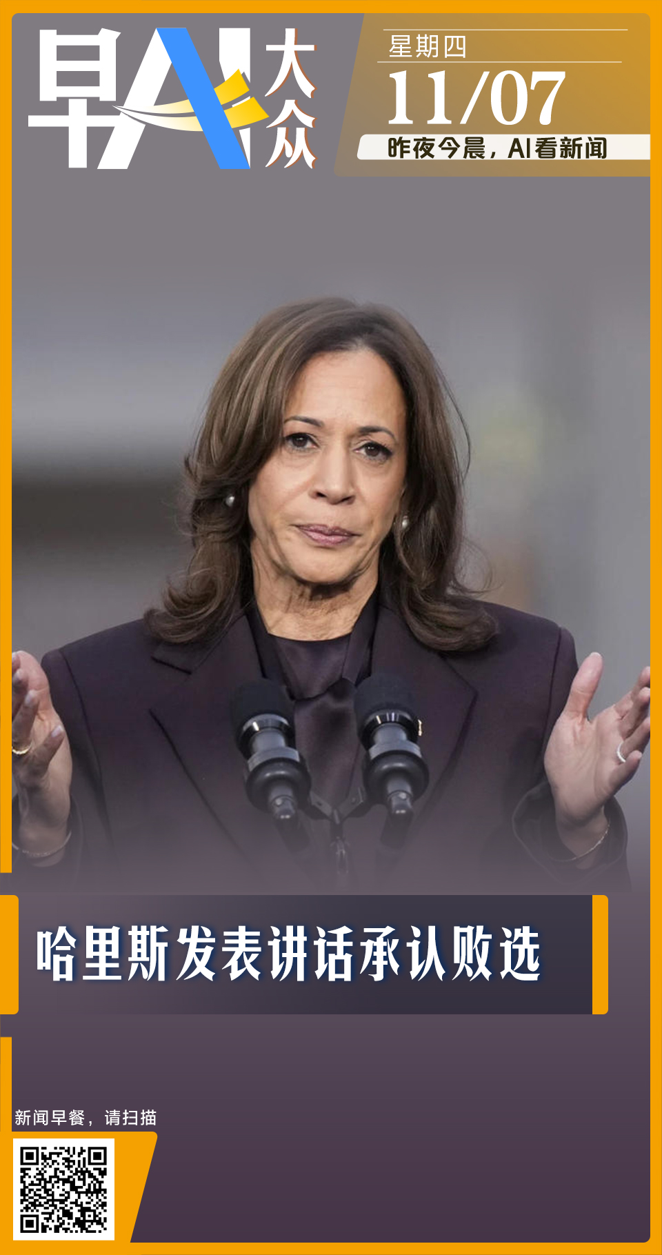 早AI大众|哈里斯承认败选;“银十”超“金九”!十月份商品房成交双增长