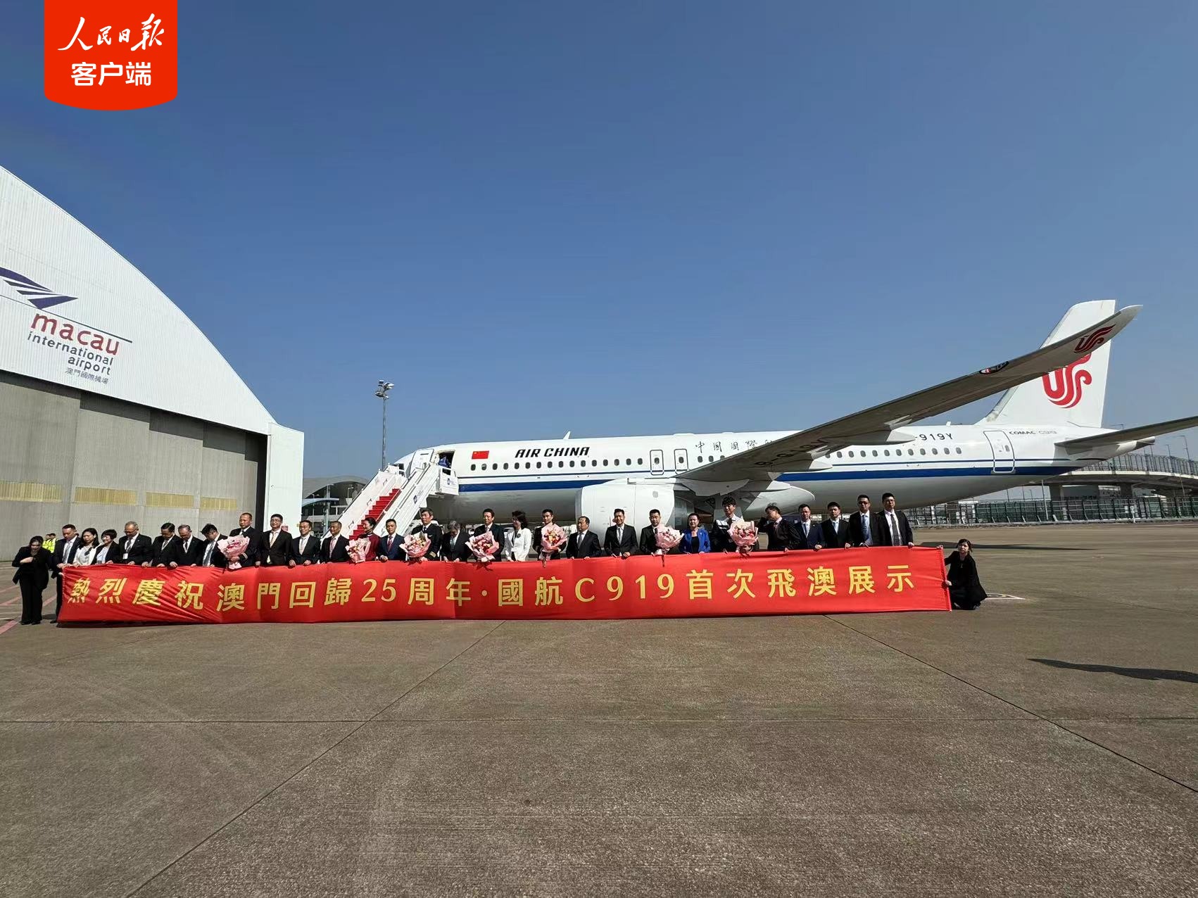 11月7日上午十时许,中国自主研制的C919大型客机载国旗首次到访澳门。南光(集团)有限公司联合澳门航空股份有限公司于澳门国际机场A14停机坪举行欢迎仪式,以航空界最高礼仪“水门礼”迎接,为C919访澳活动揭开序幕。