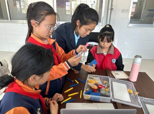 在“以漆为梦,以扇承梦”的课程上,来自海尔学校的高二人文与艺创团队学生刘雅琪讲解了精彩的漆扇技艺,在场的同学们无不为这一美轮美奂的中华传统技艺而赞叹;而在“机器人基础与拼装”课堂上,海尔学校高二年纪数学与科学团队的李欣泽等对机器人感兴趣的同学,一起为海尔希望小学的学生们带来了一款类似于电子宠物的简单机器人,现场有学生说:“今天我是第一次接触这种课程,感觉很有趣!特别是拼装机器人的过程让我印象深刻,希望以后哥哥姐姐可以继续来这里给我们科普!”