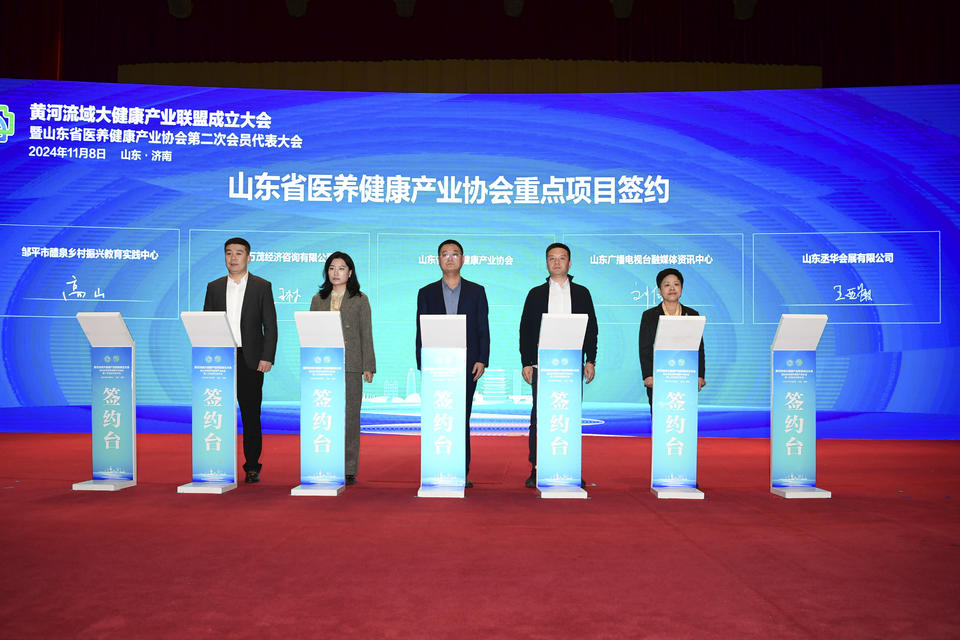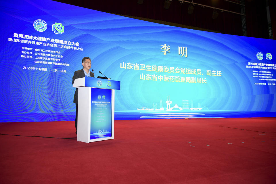 11月8日,黄河流域大健康产业联盟成立大会暨山东省医养健康产业协会第二次会员代表大会在济南成功举办。山东省政协副主席孙继业,山东省卫生健康委员会党组成员、副主任,省中医药管理局副局长李明出席会议。山东省新旧动能转换协调推进机制各成员单位、省国资委,16市卫生健康委员会负责同志,沿黄九省(区)大健康产业联盟特邀代表,山东省医养健康产业智库专家、山东省医养健康产业协会会员、山东省医养健康产教融合共同体等成员代表近500人参加大会。