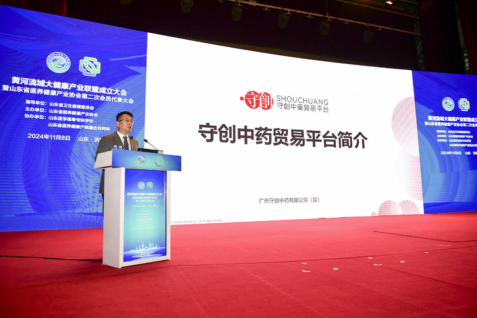 山东省医养健康产业协会名誉会长,中医药全产业链香港中心运营公司广州守创中药有限公司总经理苏树涛发言